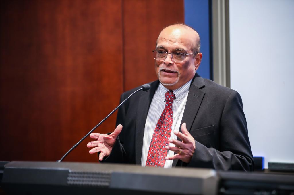 英国皇家工程院院士Gehan Amaratunga教授为论坛作了题为“Solar Photovoltaics:The Core Technology to Balance the Planet”的报告。Gehan院士以温室效应的产生原因与影响,引出讨论,向在场的师生介绍了太阳能光伏的相关知识以及平衡辐射能量的重要性。Gehan院士图文并茂的展现了温室效应影响下近几年气温与二氧化碳排放量的变化,生动形象的介绍了合理利用太阳能资源的方法原理以及其对减轻温室效应的重要性。在收听完报告后,同学们纷纷表示获益匪浅。