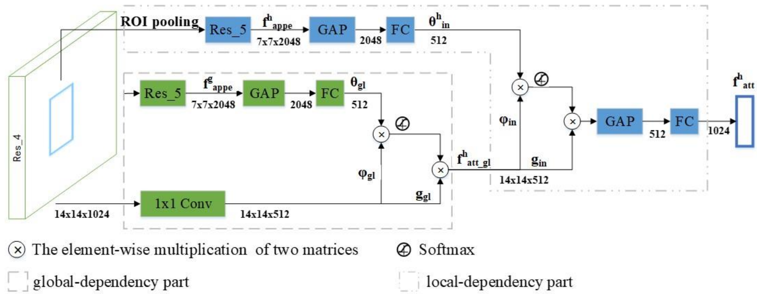 根据人-物交互检测任务的特性,文章将非局部建模分为全局(Global Level)和实例级(Instance Level)两个阶段。在这两个过程中,不同位置的特征像素将参与建模计算。由于整个场景为算法学习人-物交互行为提供了基本的上下文信息,因此文章首先构建全局依赖(Global Dependency)单元。在此基础上,进一步构建实例级依赖(Instance Dependency)单元。