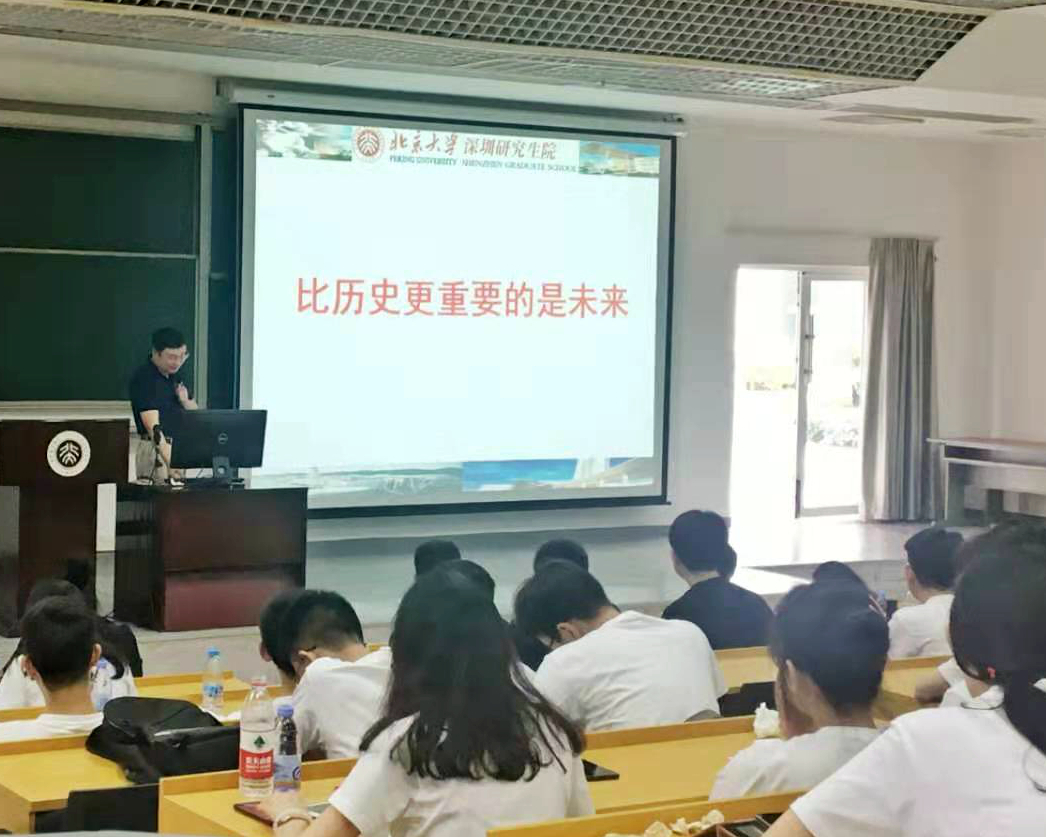 随后是专业介绍环节,首先由院长助理崔小乐教授代表微电子学与固体电子学专业老师,向同学们详细介绍了微电子学科的历史及现有师资、科研水平及深圳的独特城市魅力。