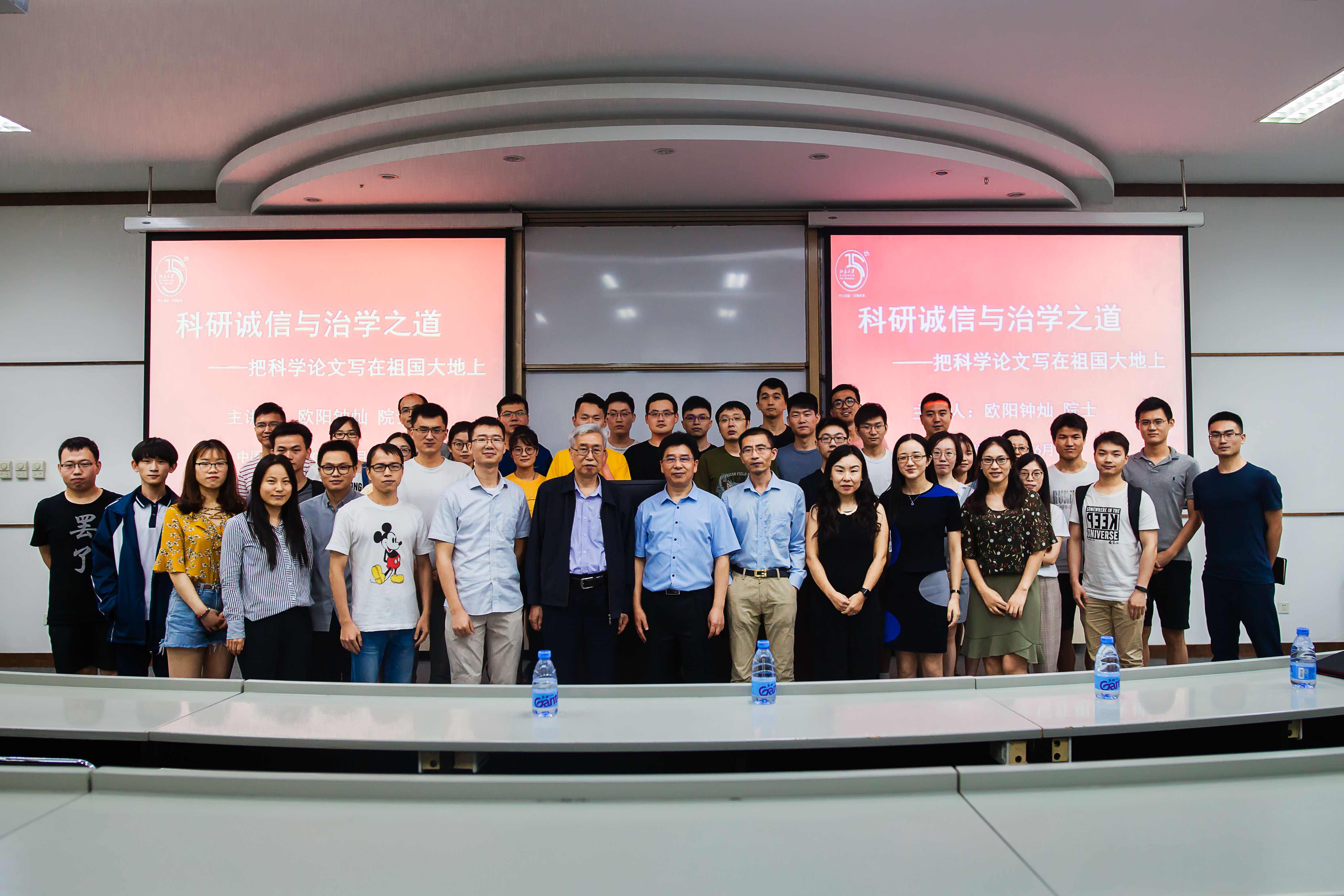 欧阳院士的演讲题目为“科研诚信与治学之道--把科学论文写在祖国大地上”。