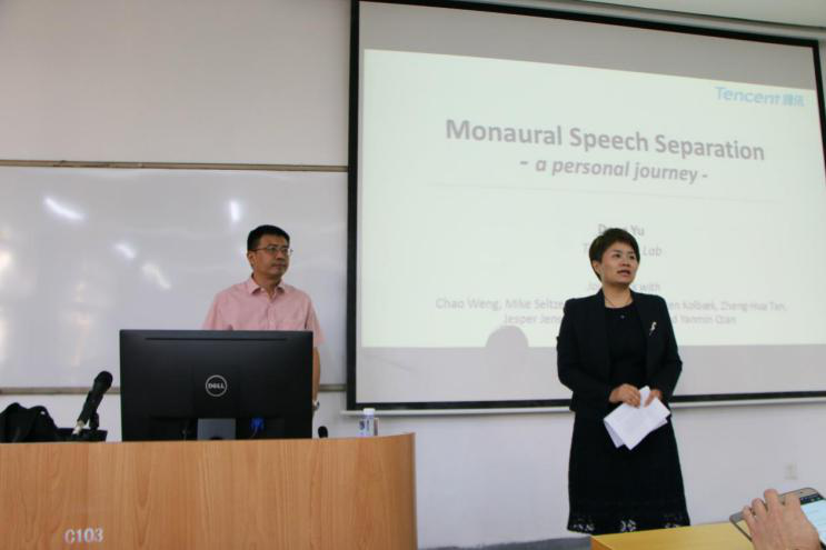 2017年11月1日下午16点,应邹月娴教授邀请,腾讯AI Lab副主任俞栋博士来High漫访问交流,在C栋103教室发表了主题为“Monaural Speech Separation – a Personal Journey”的学术讲座,同学们均以极大的热情欢迎俞栋博士的到来。讲座由邹月娴教授主持,参加讲座的有来自High漫 的朱跃生教授、焦海龙副教授、High漫 的硕士生、博士生和其他来宾。