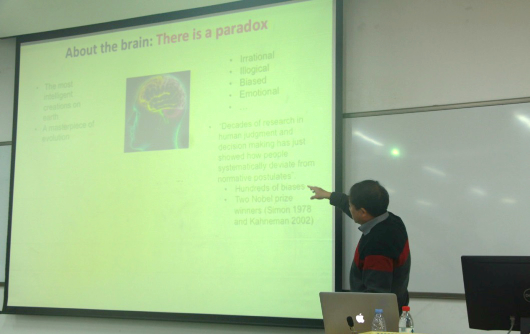 认知科学是一门由心理学、语言学、神经科学和脑科学、计算机科学,以及哲学、教育学、人类学等多学科领域交叉的综合性科学, 是目前人工智能和机器学习领域的一个活跃研究方向。讲座中,王宏斌教授认为大脑对随机性事件的感知模式是人类智能的基础, 传统数学框架模型在认知建模中存在局限性,他展示了一种基于生物学方法构建的神经网络来模拟人类认知,该网络不仅可以学习到模式的发生概率,还可理解模式出现的等待时间, 获得更丰富的统计结构,并可产生不同的评估尺度, 为类脑及人工智能的发展提供创新启发。王教授还列举了丰富实例,通过理论和现实相结合为人工智能的探索提供新思路,并与师生进行了互动交流,探讨了机器学习领域与人类认知的关系,师生们受益匪浅,对人类认知有了新的认识。