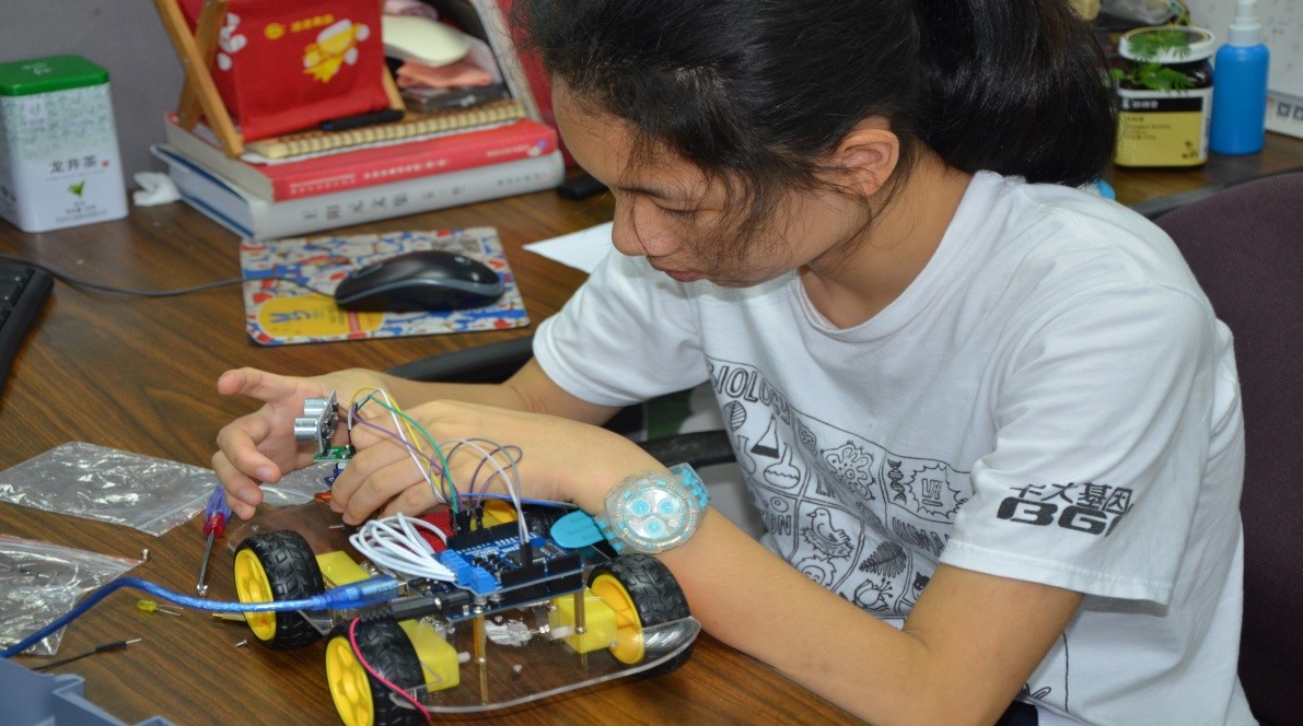 图七中的男孩子是刘慕凡,现在是辽宁省沈阳市东北育才中学高一的学生,慕凡的姑姑在深圳工作,特意给他报名来参加这次活动。慕凡妈妈表示,慕凡从来没有参加过类似的科普类动手的活动,他很感兴趣,每天上完课都舍不得回去,留下来跟小伙伴讨论怎么组装,怎么编程,整个活动下来,不仅锻炼了动手能力,还认识了一帮小伙伴,希望后续继续办类似的活动。