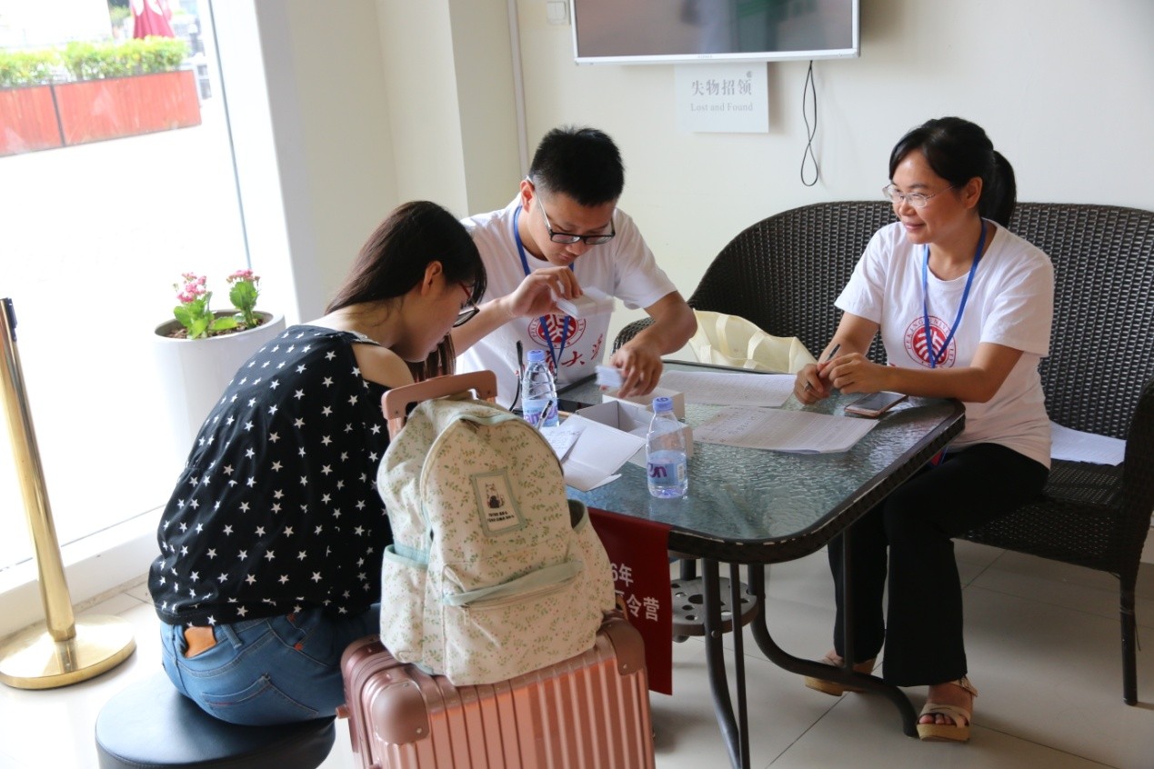 7月20日,全国各地的优秀学子陆续抵达校园生活服务中心办理报到注册等相关手续,领取入营资料。