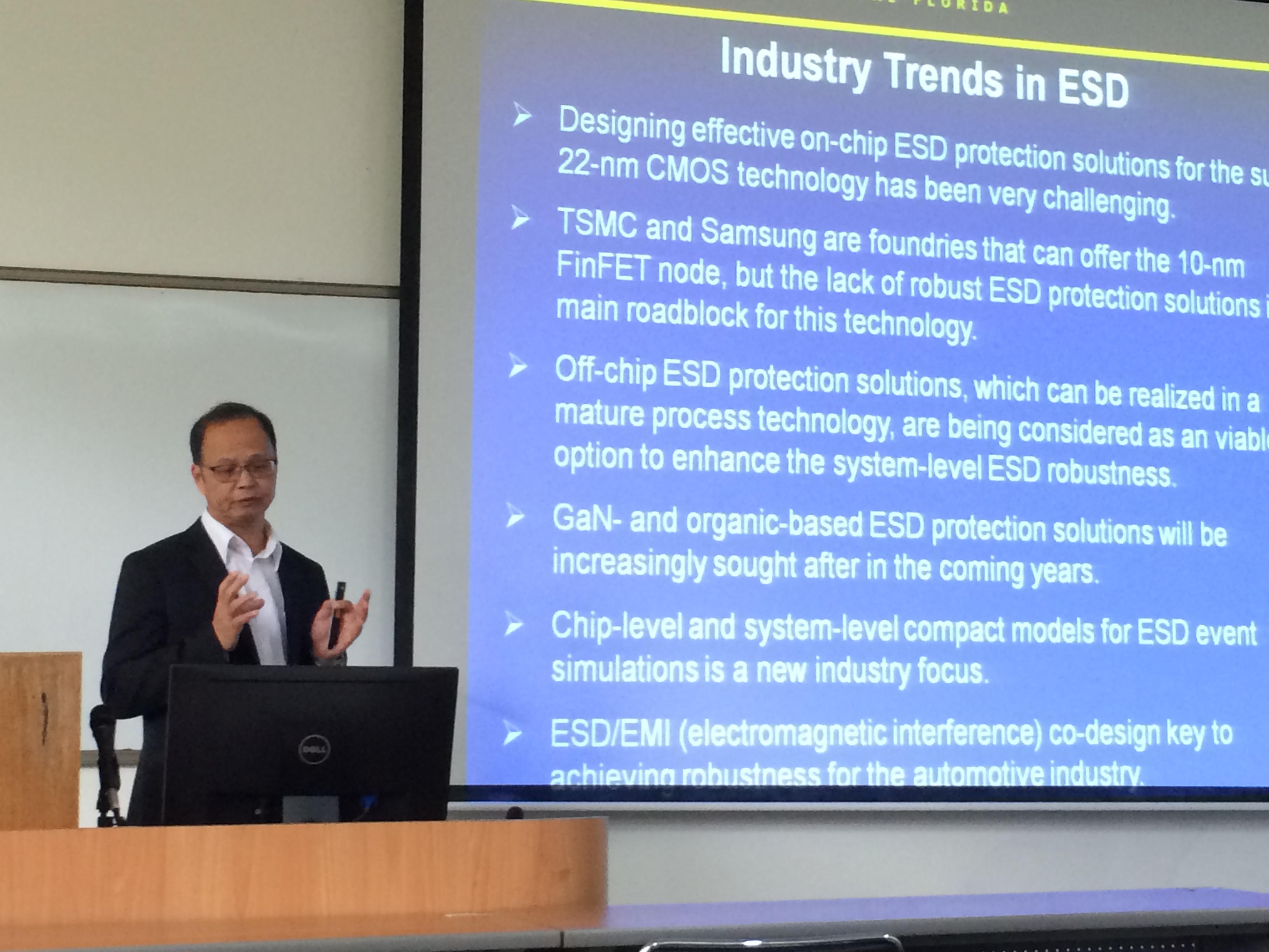 林信南副教授的邀请,中佛罗里达大学的刘俊杰教授就微电子领域的静电保护问题为信息High漫