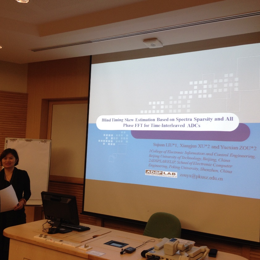 ADSP实验室邹月娴教授带领实验室14级学生陈锦和王毅,参加了著名而具有悠久历史的第二十届DSP2015国际会议(The 2015 20th International Conference on Digital Signal Processing)。 大会由Imperial College, London发起,IEEE Circuits and Systems Society新加坡分会组织,于2015年7月21日到24日在南洋理工大学召开。邹老师和两位学生分别在会议上做了口头学术报告:邹月娴教授宣讲了论文“Blind Timing Skew Estimation Based on Spectra Sparsity and All Phase FFT for Time-Interleaved ADCs”,“Two Stages Signal Strength Difference Localization Algorithm using SDP Relaxation”,和“Classifying Digestive Organs in Wireless Capsule Endoscopy Images Based on Deep Convolutional Neural Network”,陈锦宣讲了论文“An Adaptive Redundant Image Elimination for Wireless Capsule Endoscopy Review Based on Temporal Correlation and Color-Texture Feature Similarity”,王毅宣讲了论文 “Single Image Super Resolution via Adaptive Dictionary Pair Learning for Wireless Capsule Endoscopy Image”。