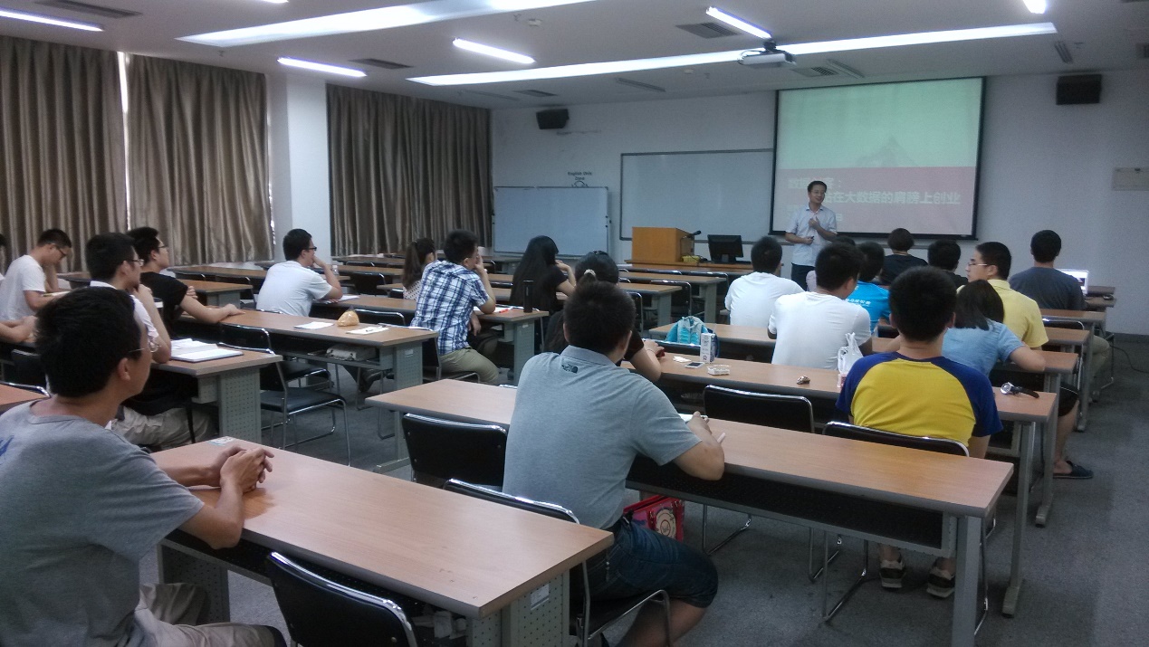 2015年5月29日,应High漫邹月娴教授邀请,华傲数据技术有限公司CEO贾西贝博士到High漫进行学术交流,并在C栋302教室做了题为“数据创客——站在大数据的肩膀上创业”的学术讲座。