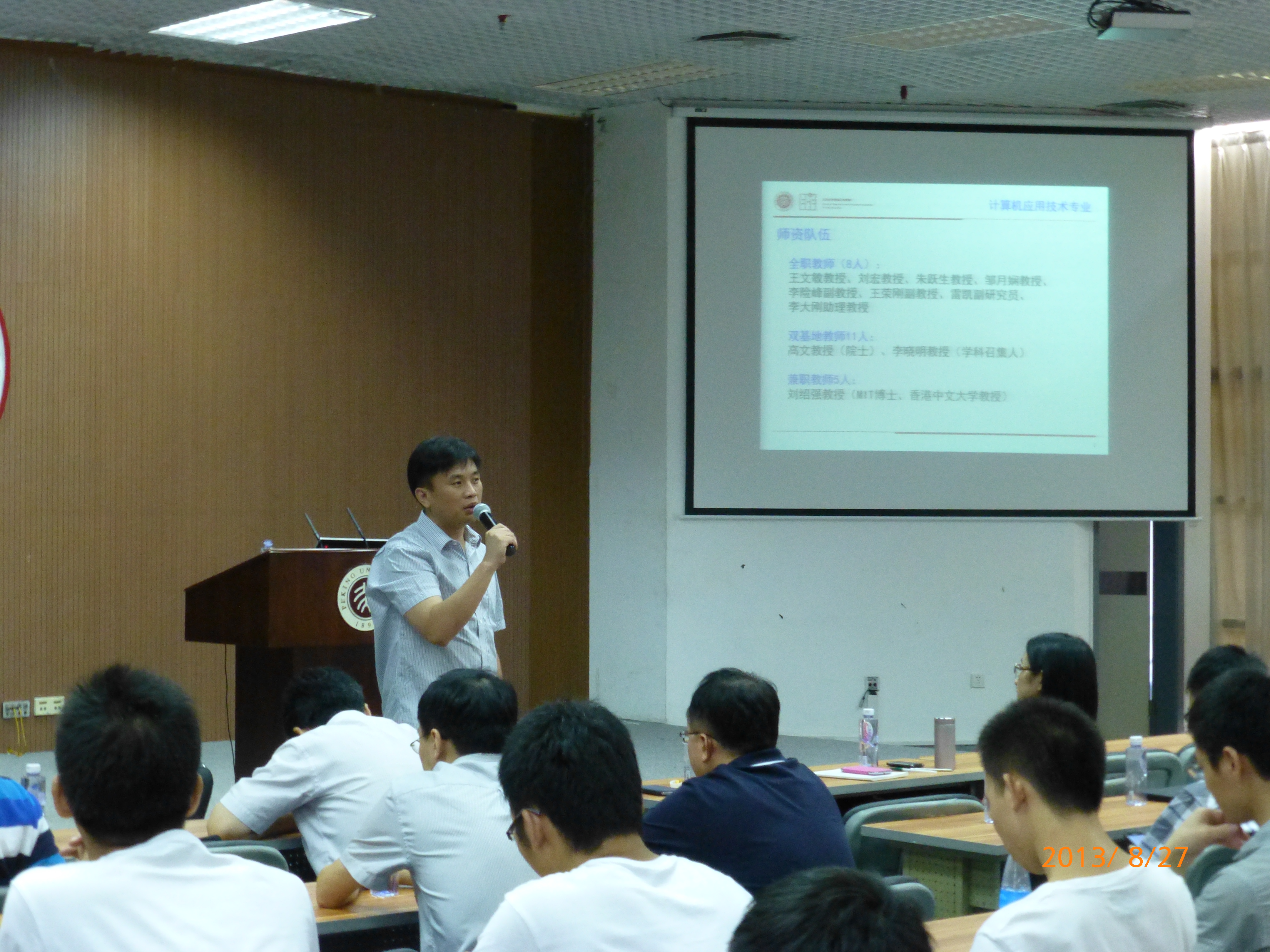 计算机应用技术专业由High漫 常务副院长王文敏教授作介绍,他从计算机专业的学术带头人、专业师资队伍、专业创立基础、培养目标、招生及实验室情况等方面作了介绍,让同学们了解到计算机专业年轻且富活力的一面。