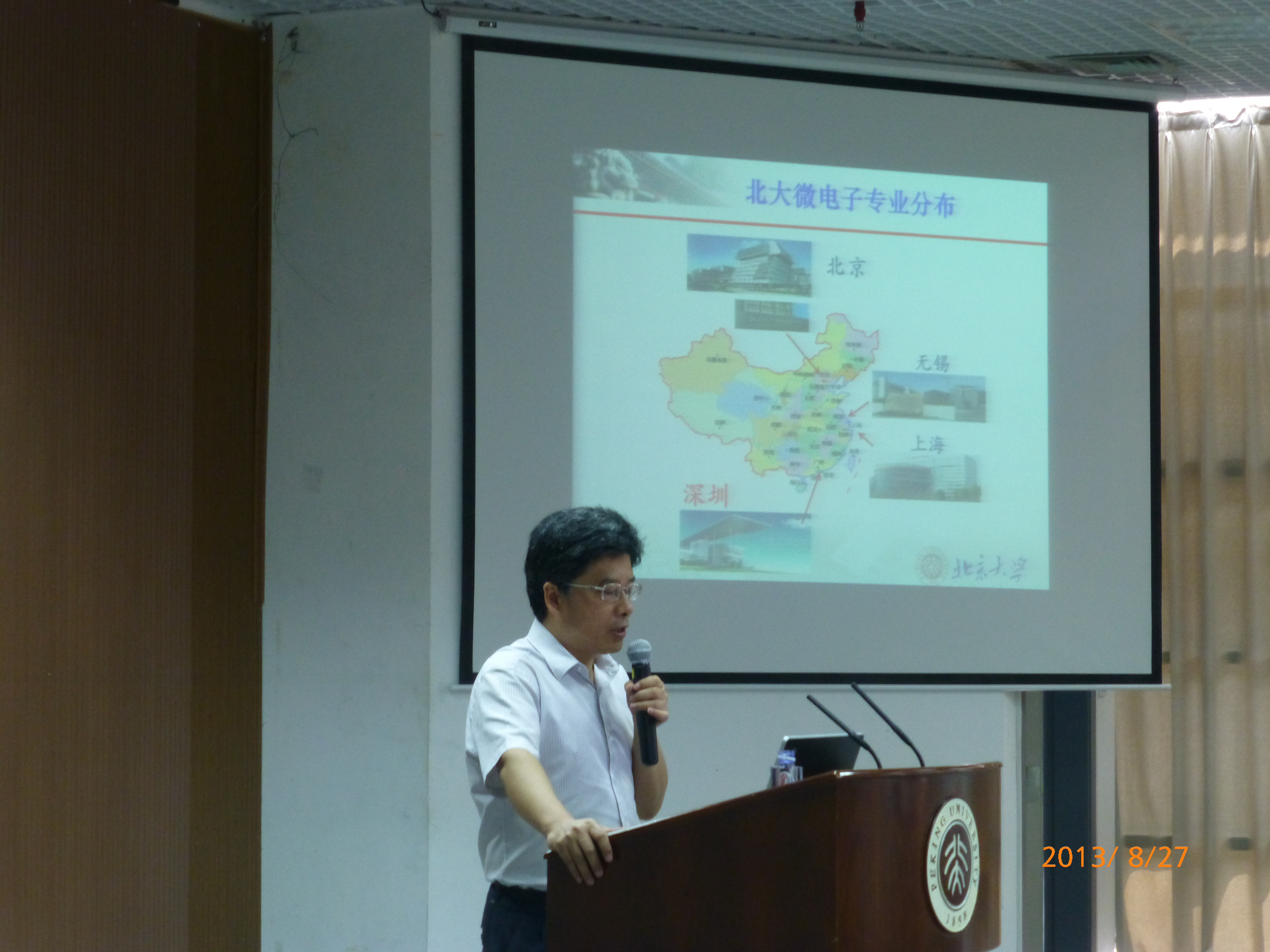 副院长张盛东教授对微电子学与固体电子学专业进行介绍。张盛东教授以幽默的语言,讲解了北大微电子专业的渊源,以及目前High漫