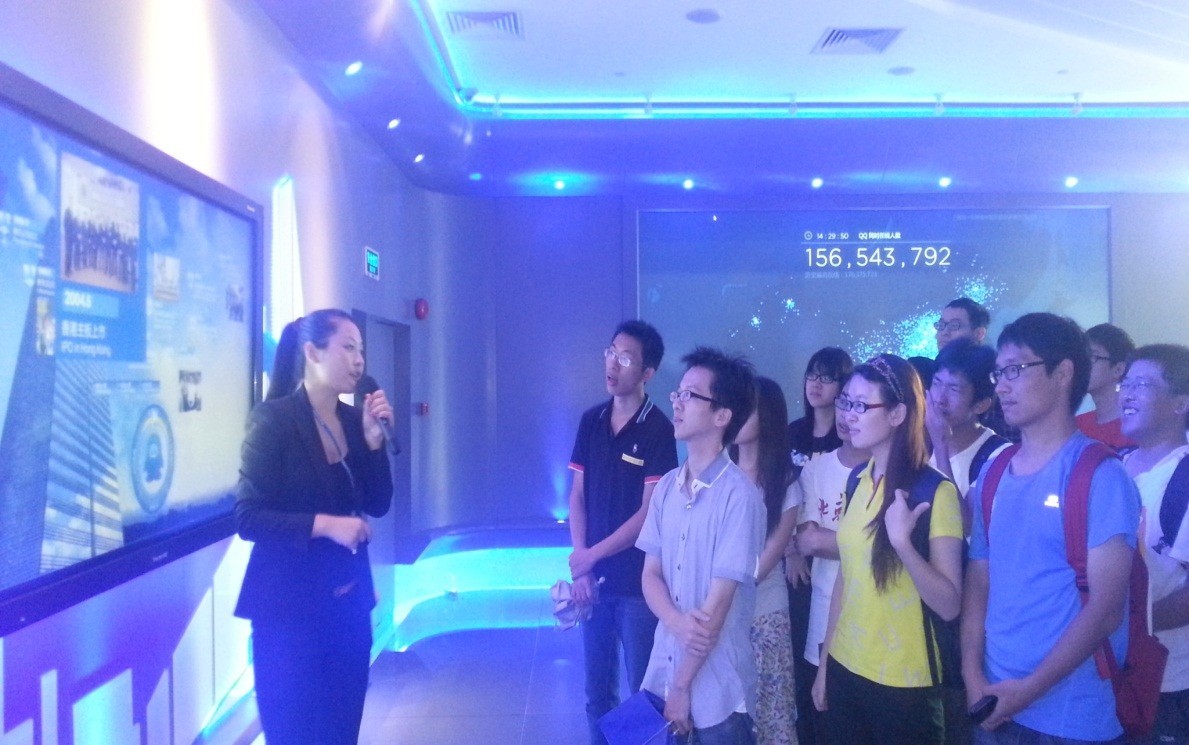 通过工作人员的细心讲解,同学们对腾讯的High漫和产品有了更深入的理解,同时也感受到公司在设计产品时的长远眼光与追求卓越技术的先进理念,也正是因为如此,腾讯公司能从2008年的71.545亿元收益增长到2012年的438亿元,同时专利数突破400余项,比肩于Google, Yahoo等国际互联网巨头,成为中国第一家用户最多的公司。