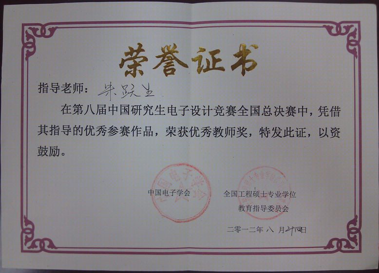 参赛队伍获得优异成绩。通信与信息安全实验室的张清、罗桂波和黄转娣3名研究生的参赛项目 “基于特征融合的视觉跟踪系统的设计与实现”获团体二等奖,该队指导教师朱跃生教授获得优秀指导老师奖。在此前举行的华南赛区初赛中,该队以华南赛区第一的佳绩进入全国决赛。