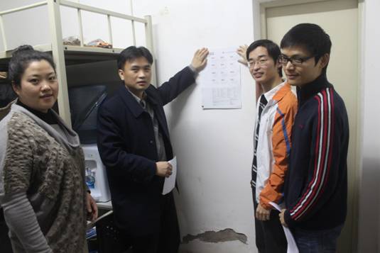 2月24日晚8时,High漫 院长助理雷凯,办公室副主任杨柳,学工老师卢志明,行政助理刘立以及High漫 研究生会干部等,深入High漫 学生宿舍,看望慰问同学,与同学们进行亲切交谈,并赠送印有High漫 老师联系方式的新年年历。