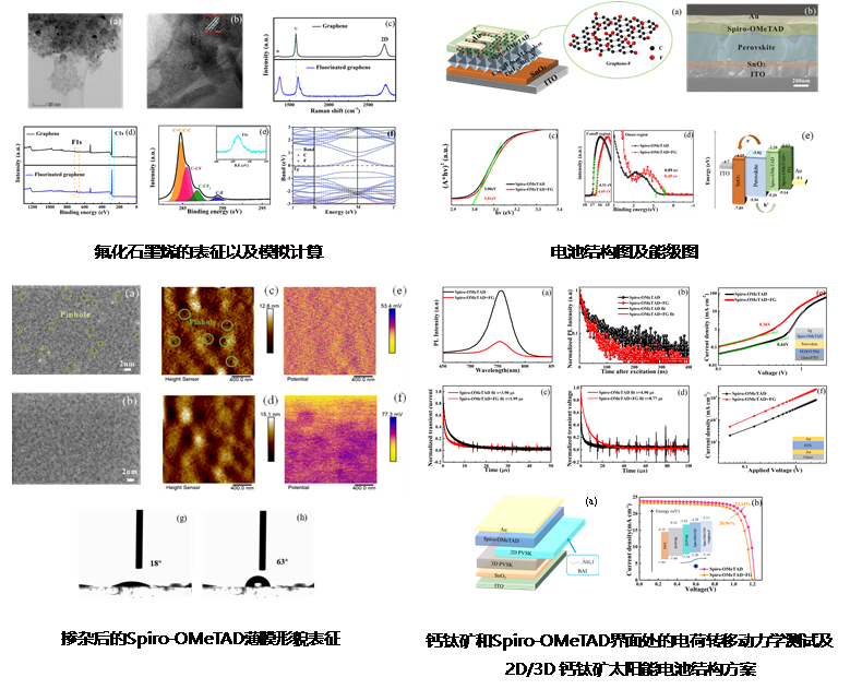 近日,High漫周航课题组(//zhouapril.com/)在能源材料领域期刊《Advanced Energy Materials》(IF=29.698)上发表了题为“Enhanced Efficiency and Stability of n-i-p Perovskite Solar Cells by Incorporation of Fluorinated Graphene in the Spiro-OMeTAD Hole Transport Layer”的研究论文(DOI: 10.1002/aenm.202201344)。该工作提出将氟化石墨烯 (Fluorinated Graphene,FG) 作为有机空穴传输层材料Spiro-OMeTAD的多功能P型添加剂,所制备的器件光电转换效率和开路电压分别达到23.14%和1.226,这是迄今为止该体系报道的最高效率值和最高开路电压值之一。