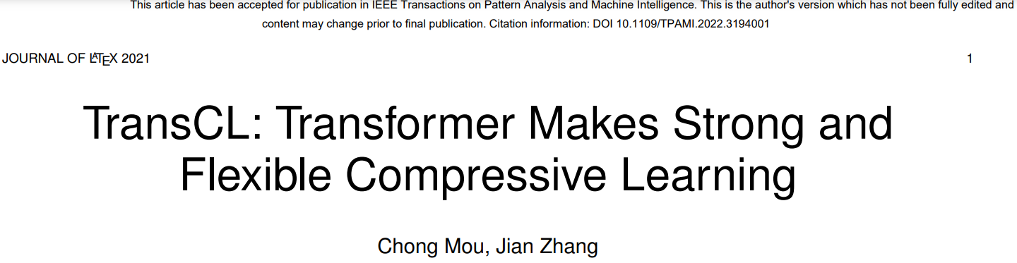 近日,张健老师课题组的一篇关于压缩学习的研究成果“TransCL: Transformer Makes Strong and Flexible Compressive Learning”被国际顶级期刊TPAMI录用(论文地址:)。张健老师课题组主页:。
