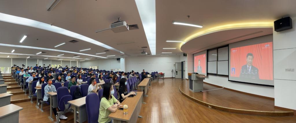 今日上午师生怀着激动的心情一齐观看二十大开幕式。总书记报告中提到,必须坚持科技是第一生产力、人才是第一资源、创新是第一动力,深入实施科教兴国战略、人才强国战略、创新驱动发展战略。我们将牢记嘱托,不忘立德树人的初心,加强为党育人、为国育才的使命感,脚踏实地,在关键核心技术上潜心科研攻关,为加快建设世界重要人才中心和创新高地贡献自己的光和热。