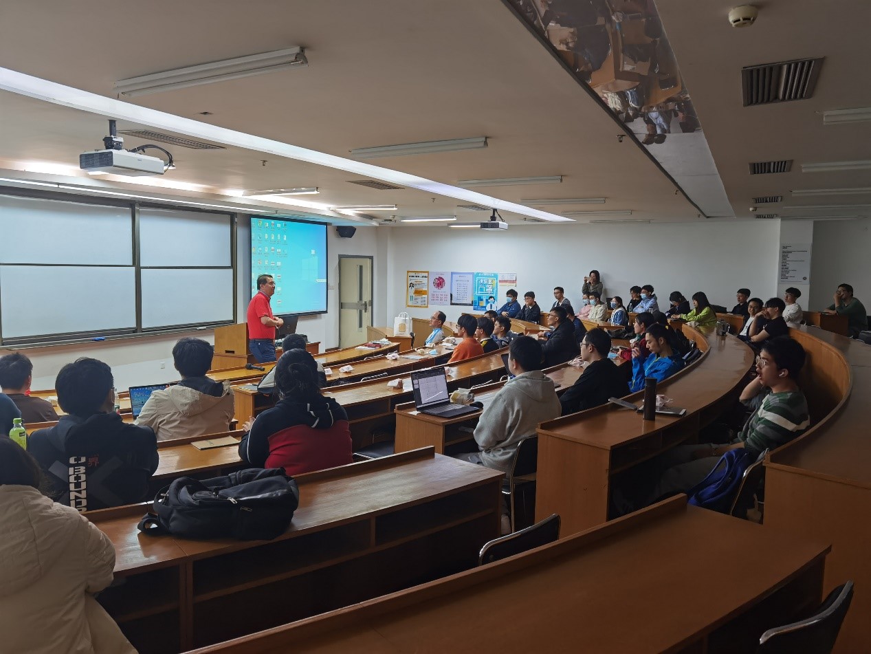 分享会在同学中引发了热烈的反响,同学们结合分享内容和自己的思考纷纷提出问题,如“如何在半导体制造行业保持工作的热情?”,“如何平衡家庭和工作的关系?”“相比于集成电路设计,毕业生进入集成电路制造领域的薪资偏低,您怎么看?”,秦宏志一一耐心解答。