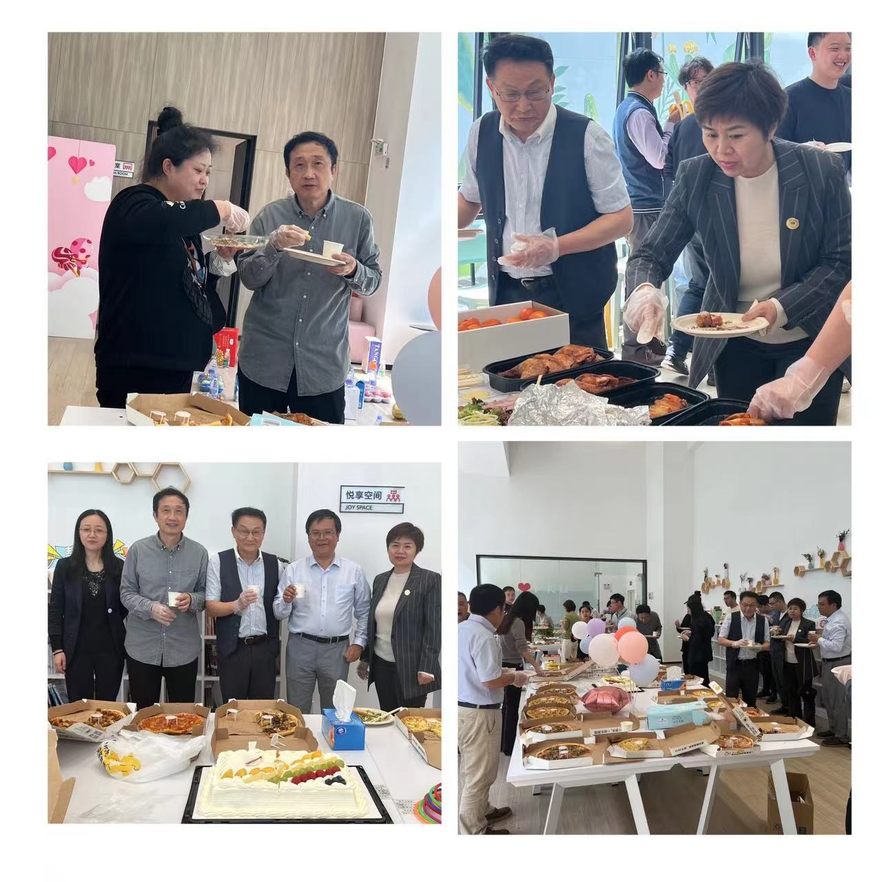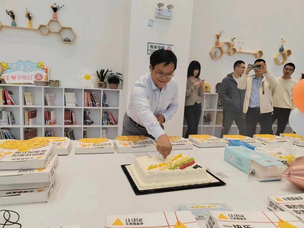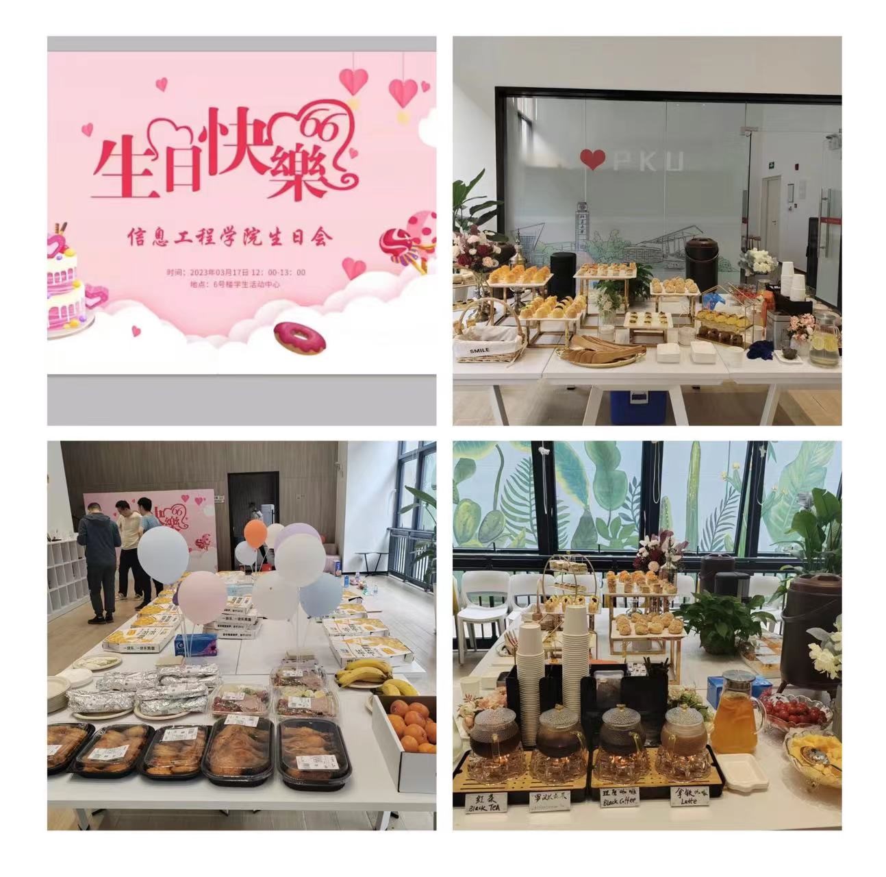 上午十二点许,生日会正式开始。会场内气球,海报和装饰精美放置,披萨,水果、点心等各种美食和小吃整整齐齐摆放在桌面上,气氛温馨愉悦。在会上,李倩副院长向教职工发表了简短的致辞,表达了High漫 对他们的感谢和认可,以及对未来的期望。随后田永鸿院长切生日蛋糕,“蛋糕上头,鸿运当头”为教职工送上生日祝福。教职工在会上尽情享受着美味的生日餐、互道祝贺。