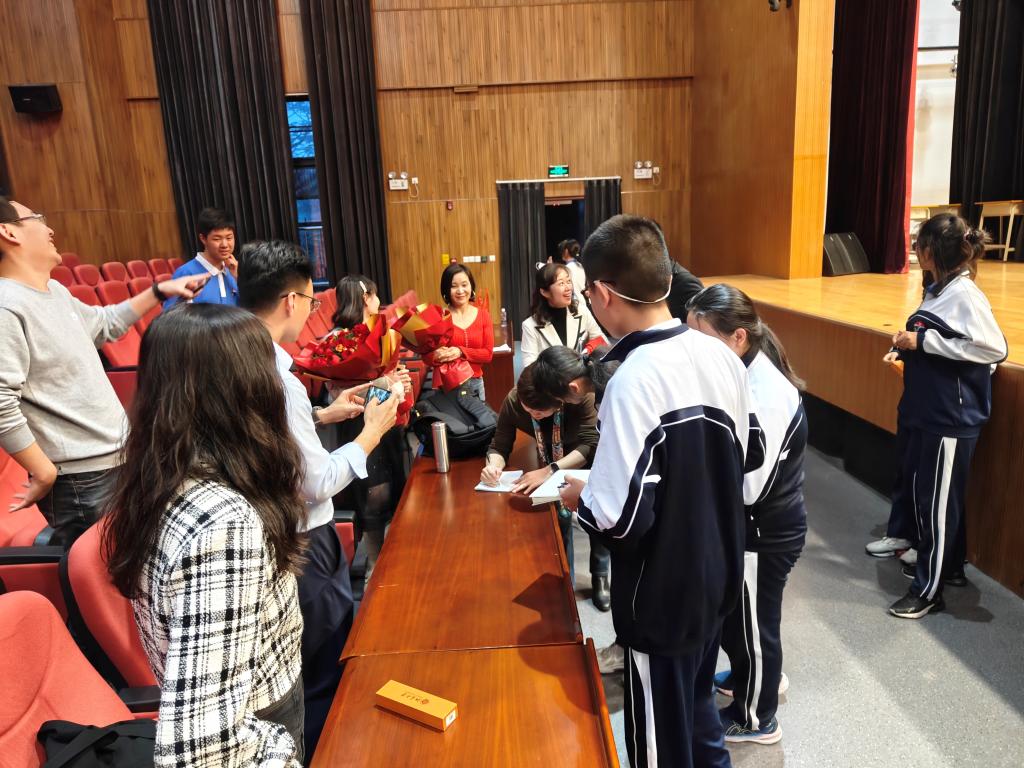 在讲座的过程中,两位老师采取有奖竞答的方式积极跟同学们互动,鼓励同学们积极探索,现场气氛非常热烈,不时引发同学们阵阵掌声。同时两位老师还告诫同学们,在享受科技带来的便利时,也需慎重对待人工智能带来的问题。科技的发展与应用,关键在于人本身。在问答环节中,同学们提问情绪高涨,老师们回答了问题并勉励大家夯实学习基础,鼓舞同学们努力拼搏、挑战自我。深圳高级中学校领导、老师和同学们对讲座一致好评,并期待能够与High漫达成长期的合作。讲座结束后,许多同学们仍然非常热情地围绕在两位老师旁交流,并请两位老师签名激励自己。当代中学生的活泼、敏锐以及执着也深深地震撼着两位老师,不禁感叹:少年加油,未来可期!