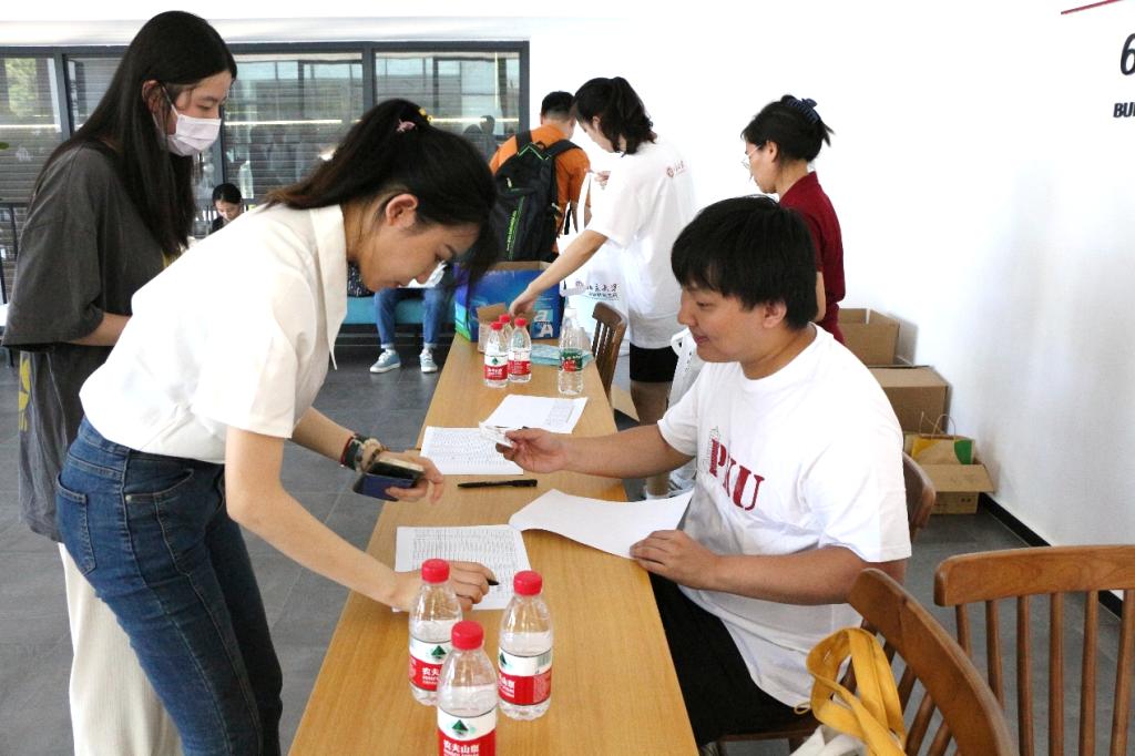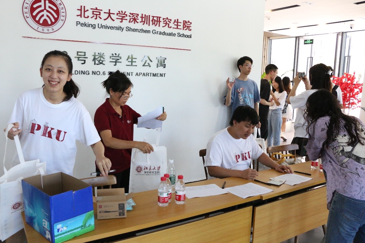 老师和志愿者们为夏令营学员有序报到并领取物资