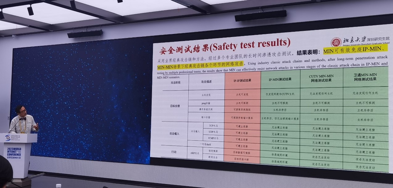 同时李挥教授提出了多标识网络的统一协同内生智能安全机制MIN-SM,以可信身份为锚点、内生智能安全为骨架,从网络各个层级构建防御体系。MIN在近10场国内外大规模网络攻击众测比赛中未有败绩,包括紫金山挑战赛为实战靶场,证明MIN可有效免疫疫IP-MIN、MIN-MIN场景下经典攻击链各环节的网络攻击。