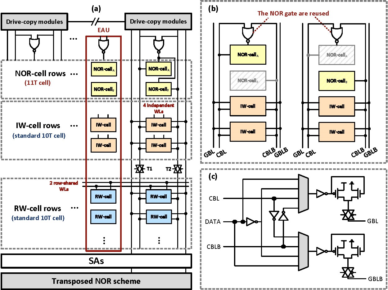 (a)总体结构 (b)NOR单元 (c)10T单元