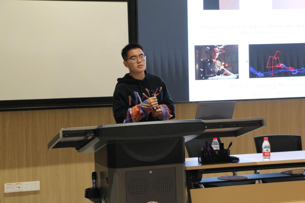 李文豪同学及同门蔡家伦同学分享的是发表在TMM 2022上的“Exploiting Temporal Contexts With Strided Transformer for 3D Human Pose Estimation”,目前谷歌学术引用量140+,Github Star 320+。尽管从视频中估计三维人体姿态取得了巨大的进展,但如何充分利用冗余的二维姿态序列来学习生成单个三维姿态的代表性表示仍是一个开放性的问题。本文针对视频中姿态数据的冗余性问题与Transformer应用于长序列数据的复杂性问题,提出了用于视频三维人体姿态估计的Strided Transformer,它在序列长度方面压缩模型并以一种全局到局部的方式逐渐聚合信息到姿态序列的单个向量的表示,以此让它效率地处理更大的时间感受野,从而估计出更准确的三维人体姿态。该工作在Human3.6M和HumanEva-I两个具有挑战性的基准数据集上进行了评估,并以较少的参数获得了最先进的结果。分享结束后,在场的同学积极地和蔡家伦同学请教讨论,包括例如如何降低模型的参数量和所需数据量,在已有的资源里将模型训练起来等问题,同学们收获匪浅。