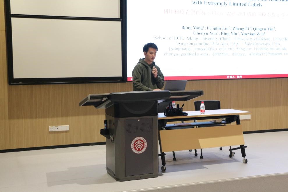 杨邦同学等人聚焦人工智能在电商领域的应用,研究如何在大规模视觉-语言预训练模型的基础上自动地为电商产品生成合适的标题。现有的方法主要是基于编码器-解码器框架,需要大量的配对数据,无法应对新产品标注稀缺问题。杨邦同学等人因此提出了多模态提示学习(Multimodal Prompt Learning)框架来高效地捕获产品特征和相关写作风格。实验表明,所提方法能够有效降低对新产品标注数据的依赖。此外,该工作还通过消融实验反映了多模态提示相比单模态提示的优越性。汇报结束后,老师们肯定了论文工作的创新性,也对论文的改进提出了一些建设性建议。