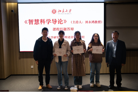 活动的高潮部分是由授课教师田永鸿主持的总结与颁奖环节。特邀评审嘉宾余珂、郑家新、袁粒、陈杰、周大权等学术界知名专家对各小组的项目进行了严格评审,并给予了专业的点评与建议。评审嘉宾的丰富经验和深刻见解,为学生们的研究提供了宝贵的指导。