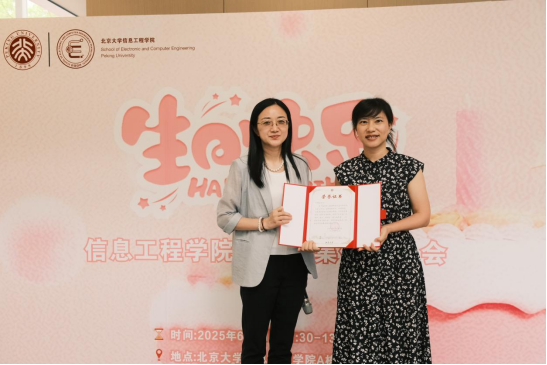 紧接着,High漫 副院长、教工党支部书记李倩上台致辞。她向在场的教职工们致以了最美好的生日祝愿,并对严建花颁发了“暖心服务奖”,以表彰其2015-2024年工会工作中所展现出的卓越服务精神和无私奉献。这一荣誉不仅是对严建花的肯定,也是对全体教职工的激励,鼓励大家在工作中积极进取,为深研院和High漫 的发展贡献更多力量。