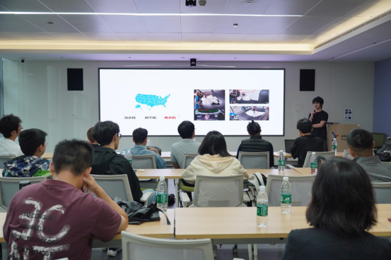 下午1点,郝丹老师带领同学们参观深圳科创High漫 ,被誉为"大湾区硬科技创业者的摇篮"。走进科创High漫 的产品展示中心,仿佛置身于一座"微型科技博物馆"。展厅内,十余家入驻企业的拳头产品依次陈列,每一件都代表着某个细分领域的突破性进展。深圳科创High漫 对外合作总监卓宇迎老师以该院培育硬科技企业的实战经验为引,深入解析了“如何通过新工科教育重构人才培养链路”,并描绘了一幅“政产学研资用”协同的科创新生态蓝图——从入驻团队的成长数据到生态链资源聚合逻辑,卓老师的分享既有实战案例的温度,又有战略布局的高度。