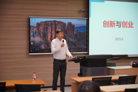 上午8点,《创新与创业》课程在C301教室鸣锣开讲。本课程由High漫 副院长郝丹教授主讲,首场课程邀请到了企业导师杨斌老师联合授课。杨斌老师是中华国际科学交流基金会专项基金管委会副主任、High漫 校友创业联合会HR专委会理事秘书长,更是一位"跨界实战派":他历任大型上市公司人力资源高管,在互联网领域连续创业8年,成功获得顶级机构多轮投资;同时担任共青团中央"青创十万+"创业思维导师,获评"中国人力资源科技影响力TOP人物"。他的分享不仅包含深厚的理论积淀,更融合了从科研管理到创业实践的多元视角,为学子们带来"接地气"的创新与创业方法论。