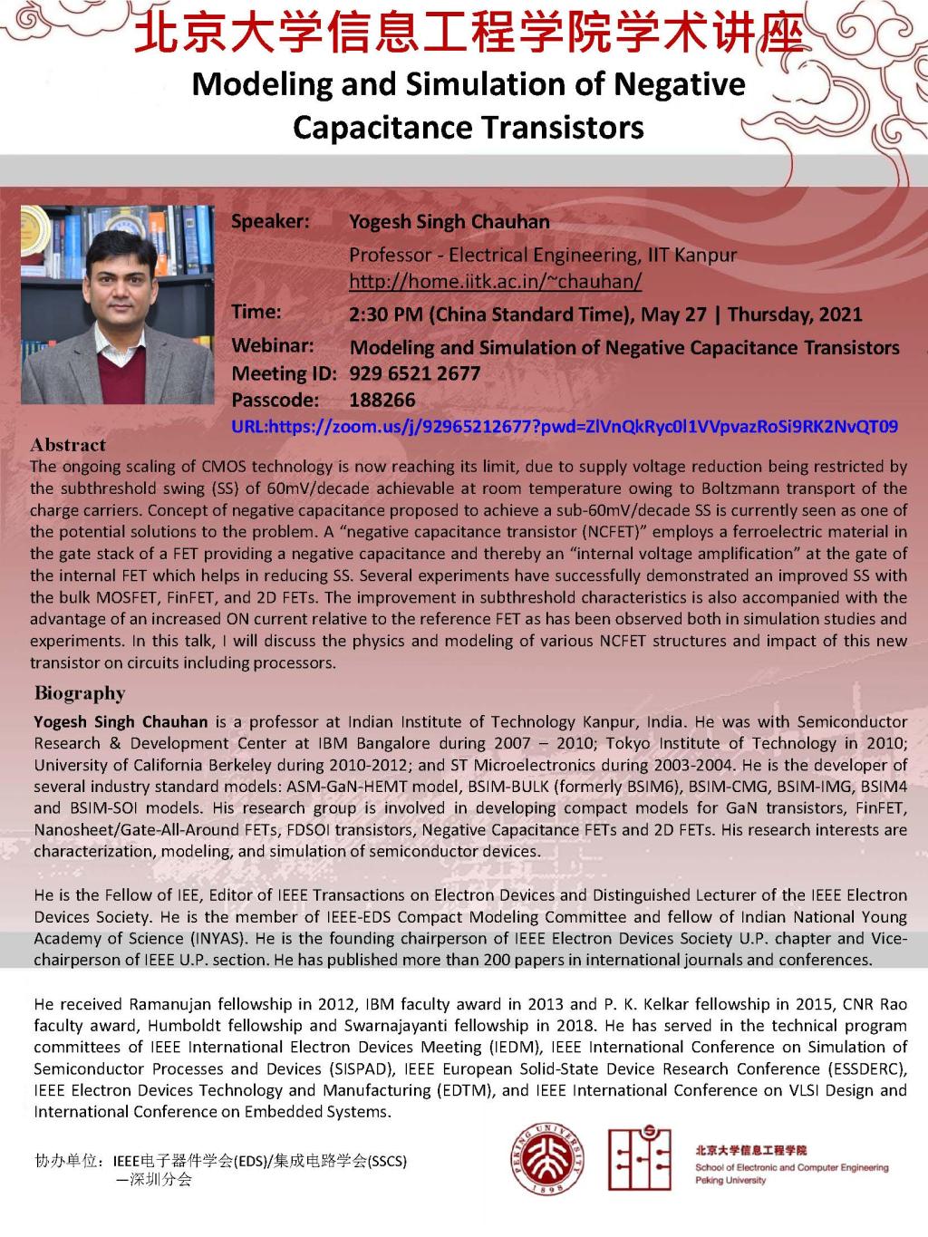 【学术讲座】Prof.Yogesh Singh Chauhan:Modeling and Simulation of Negative Capacitance Transistors