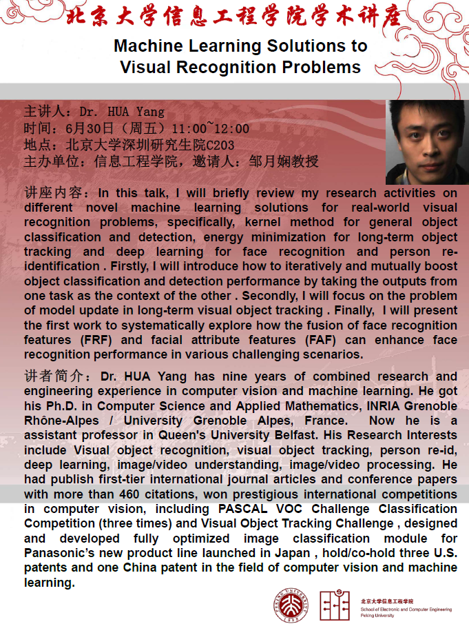 【学术讲座】华杨:Machine Learning Solutions to Visual Recognition Problems