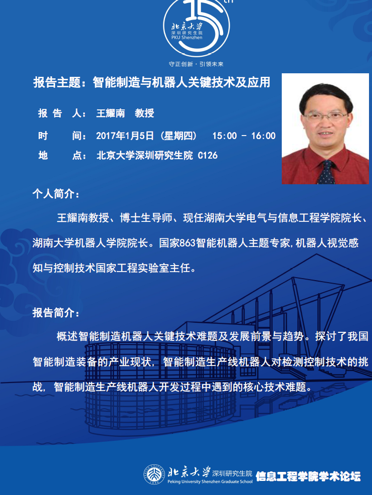 【学术讲座】王耀南教授、博士生导师:智能制造与机器人关键技术及应用