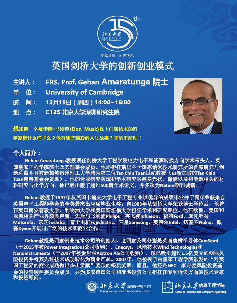 【学术讲座】FRS. Prof. GehanAmaratunga院士:英国剑桥大学的创新创业模式