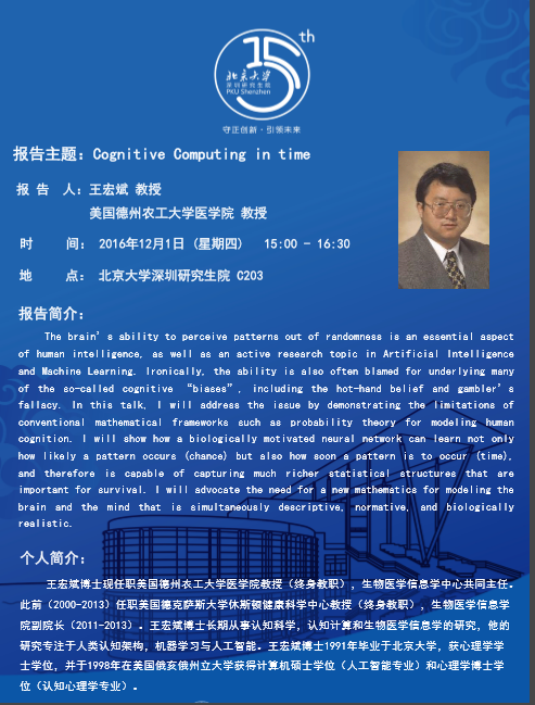 【学术讲座】王宏斌 美国德州农工大学医High漫 教授:Cognitive Computing in time