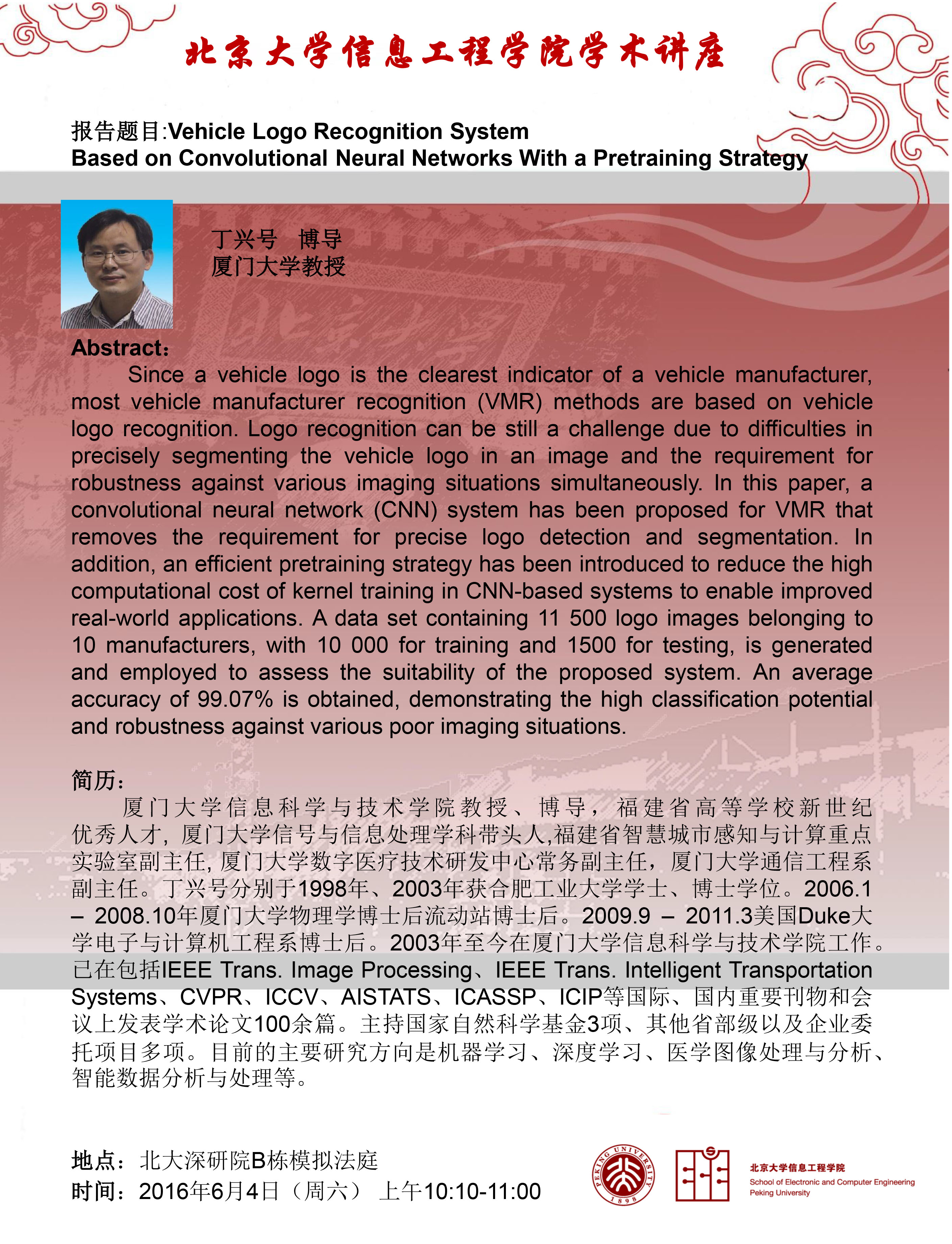 【学术讲座】丁兴号教授(厦门大学):Vehicle Logo Recognition System Based on Convolutional Neural Networks With a Pretraining Strate