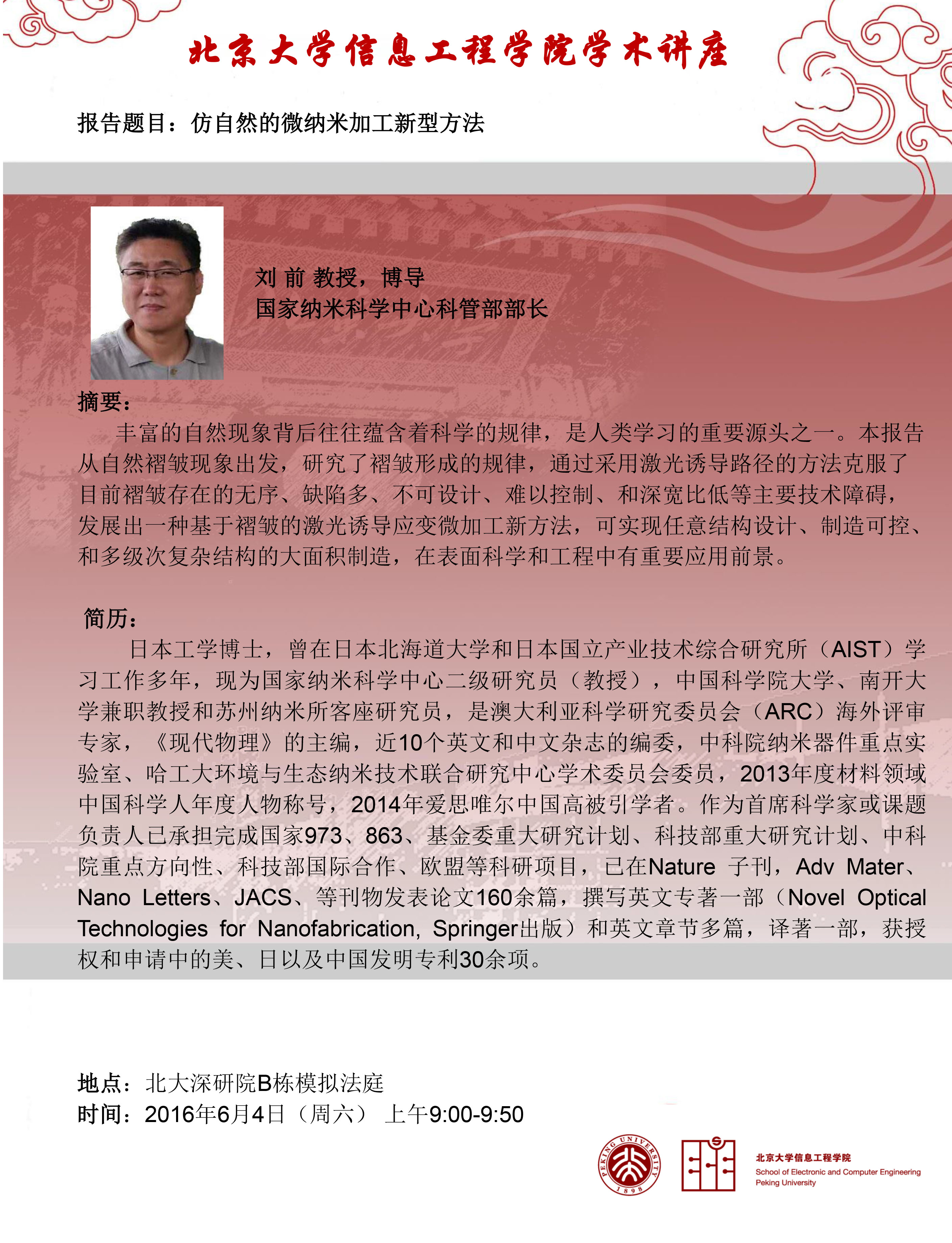 【学术讲座】刘前教授(国家纳米科学中心科管部部长):仿自然的微纳米加工新型方法