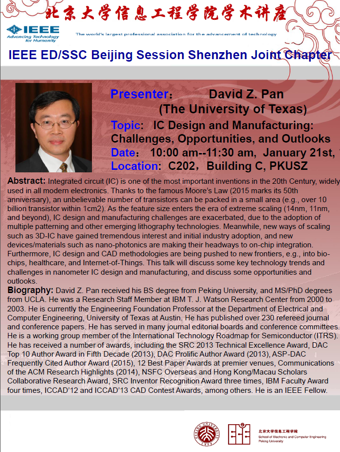 【学术讲座】Dr.David Z. Pan:IC Design and Manufacturing: Challenges, Opportunities, and Outlooks