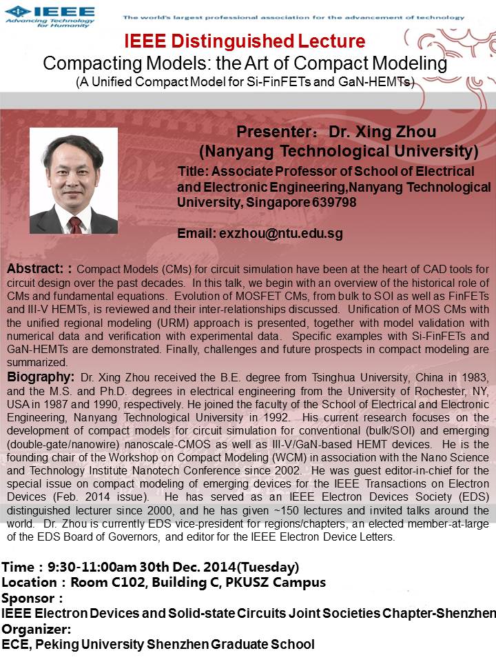 【学术讲座】Dr. Xing Zhou:Compacting Models: the Art of Compact Modeling