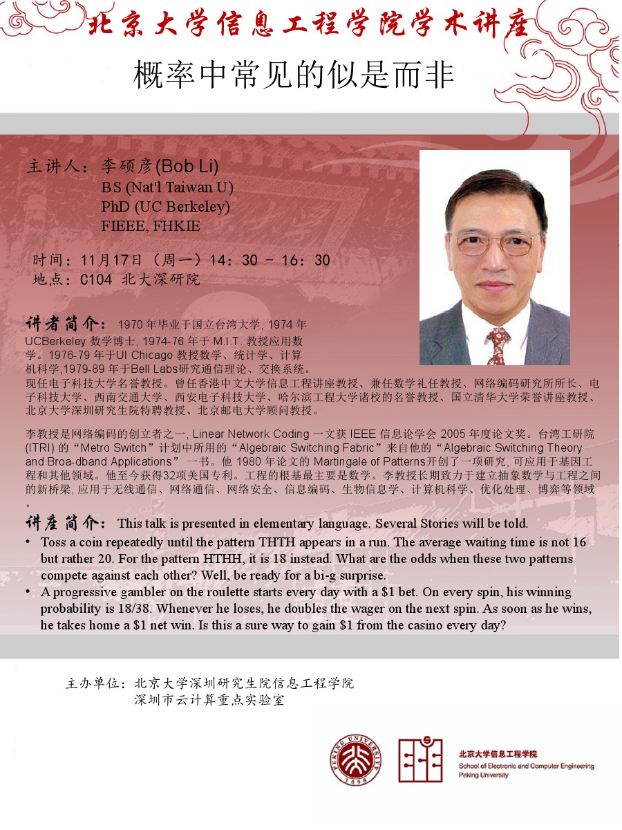 【学术讲座】李硕彦教授:概率中常见的似是而非