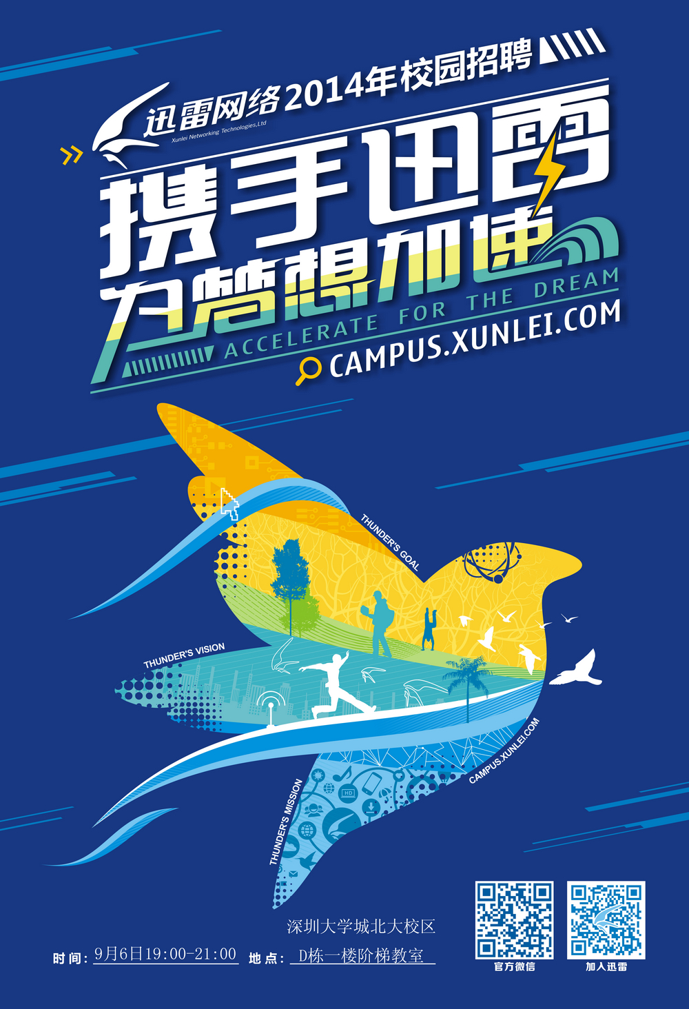 深圳迅雷网络技术有限公司2014校园招聘现已启动。迅雷是中国领先的致力于科技传承文化的互联网公司。目前,迅雷累计用户超过12亿,月度活跃用户超过3亿,已成长为中国最大的数字内容发行平台。