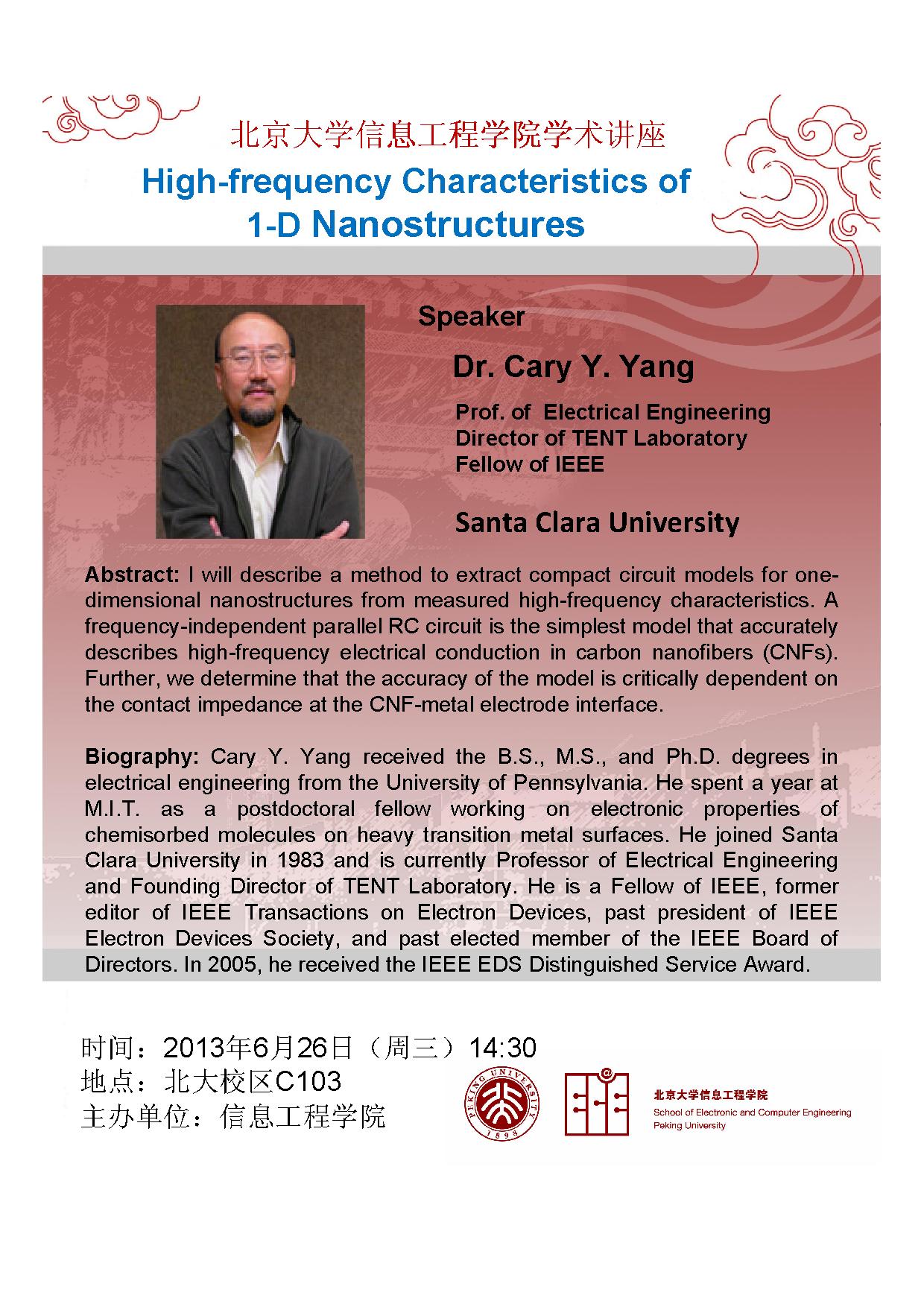 【学术讲座】Dr.Cary Y.Yang:High-frequency Characteristics of 1-D Nanostructures
