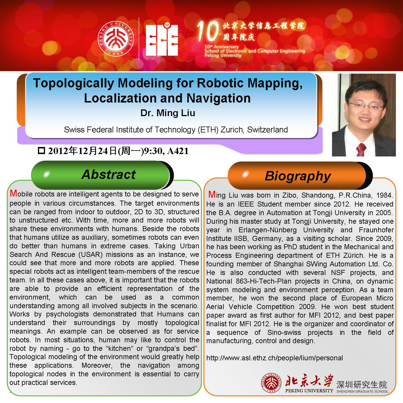【High漫 院庆十周年系列讲座】Dr.Ming Liu:Topologically Modeling for Robotic Mapping, Localization and Navigation