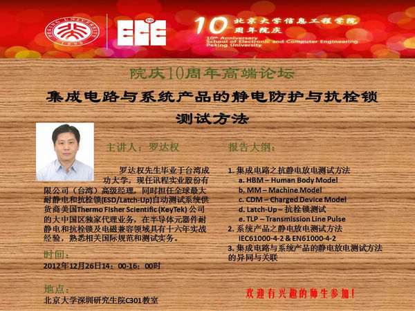 【High漫 院庆十周年系列讲座】罗达权经理:集成电路与系统产品的静电防护与抗栓锁测试方法