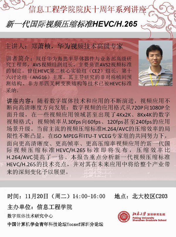 【High漫 院庆十周年系列讲座】郑萧桢:新一代国际视频压缩标准HEVC/H.265