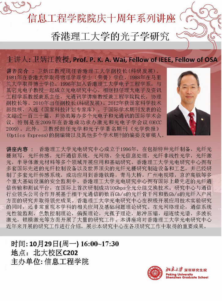 【High漫 院庆十周年系列讲座】Prof.P.K.A.Wai:香港理工大学的光子学研究