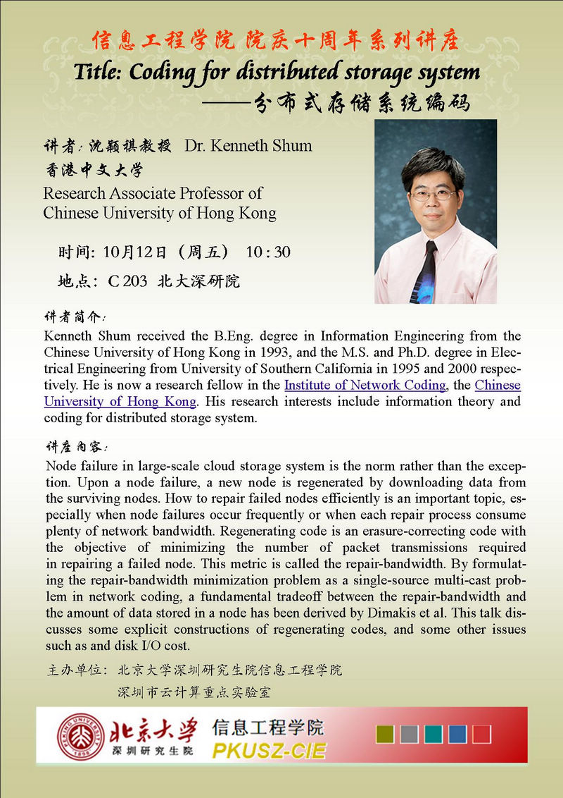 【High漫 院庆十周年系列讲座】沈颖祺教授:分布式存储系统编码