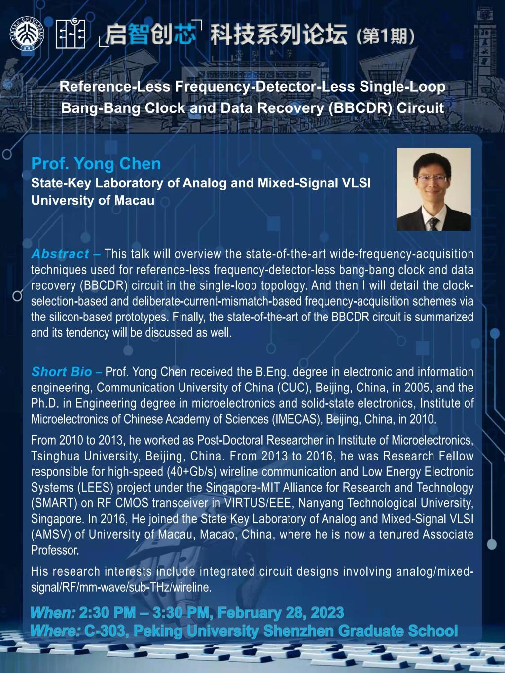 “启智创芯”科技系列论坛 (第1期):Reference-Less Frequency-Detector-Less Single-Loop Bang-Bang Clock and Data Recovery (BBCDR) Circuit