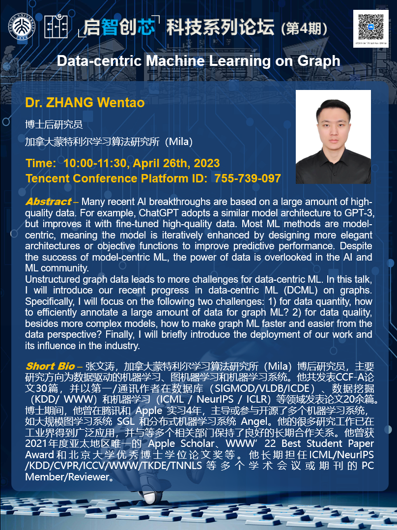 【启智创芯科技系列论坛】 (NO.4)Dr.ZHANG Wentao:Data-centric Machine Learning on Graph